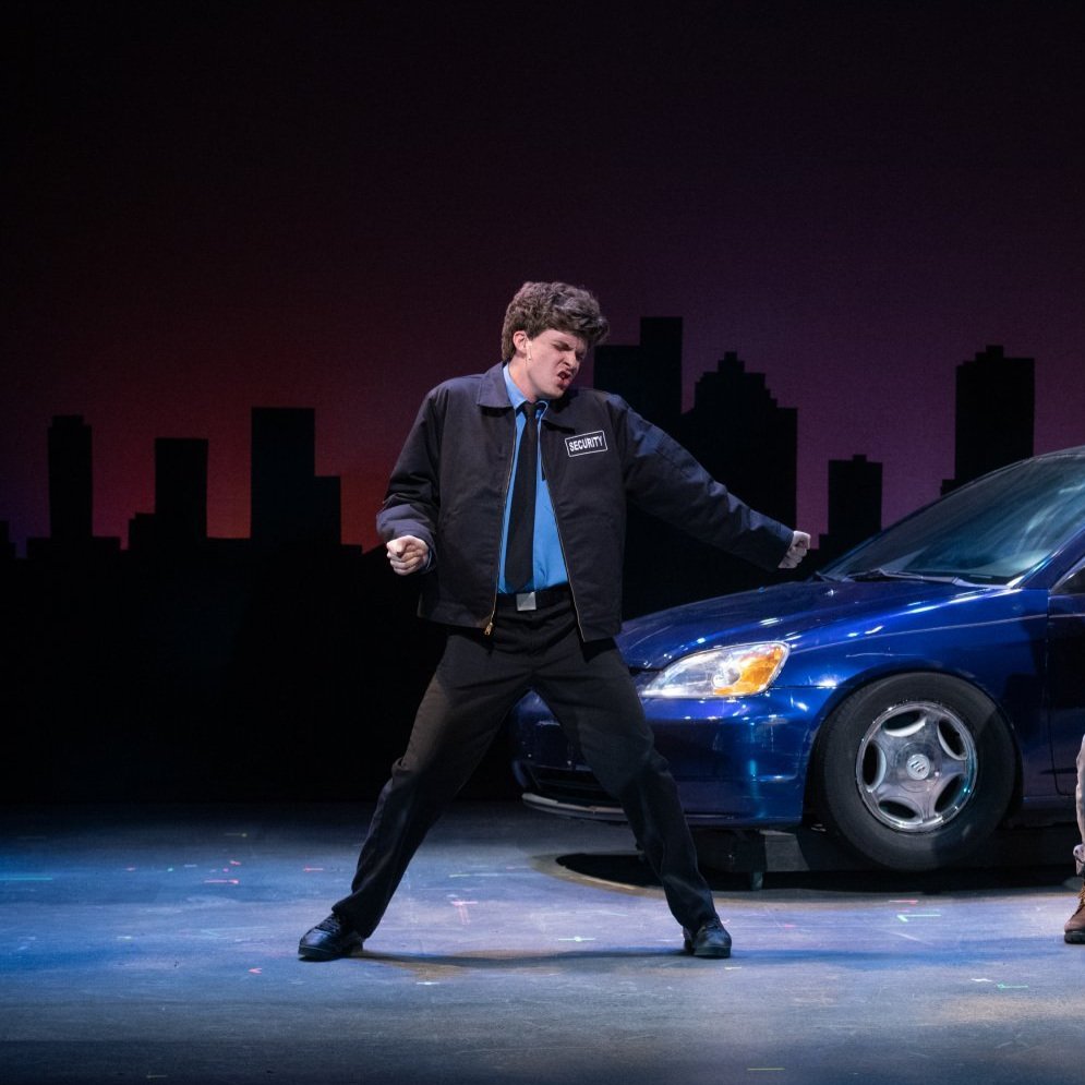 “The absolute highlight of the plot detours focuses on Malcom MacGregor (Joey Chelius), a young man who is struggling with the strip routine’s choreography, mourning the loss of his mother, and figuring out a way to express his sexuality. MacGregor’s burgeoning relationship with another cast member and his heart wrenching duet at the funeral (“You Walk with Me”) are the most authentic and moving parts of the show, thanks to Chelius’s extraordinary performance. Awkward, honest, and goofy by turns, his character discovers there is strength in vulnerability long before he takes the stage to take it all off.”
